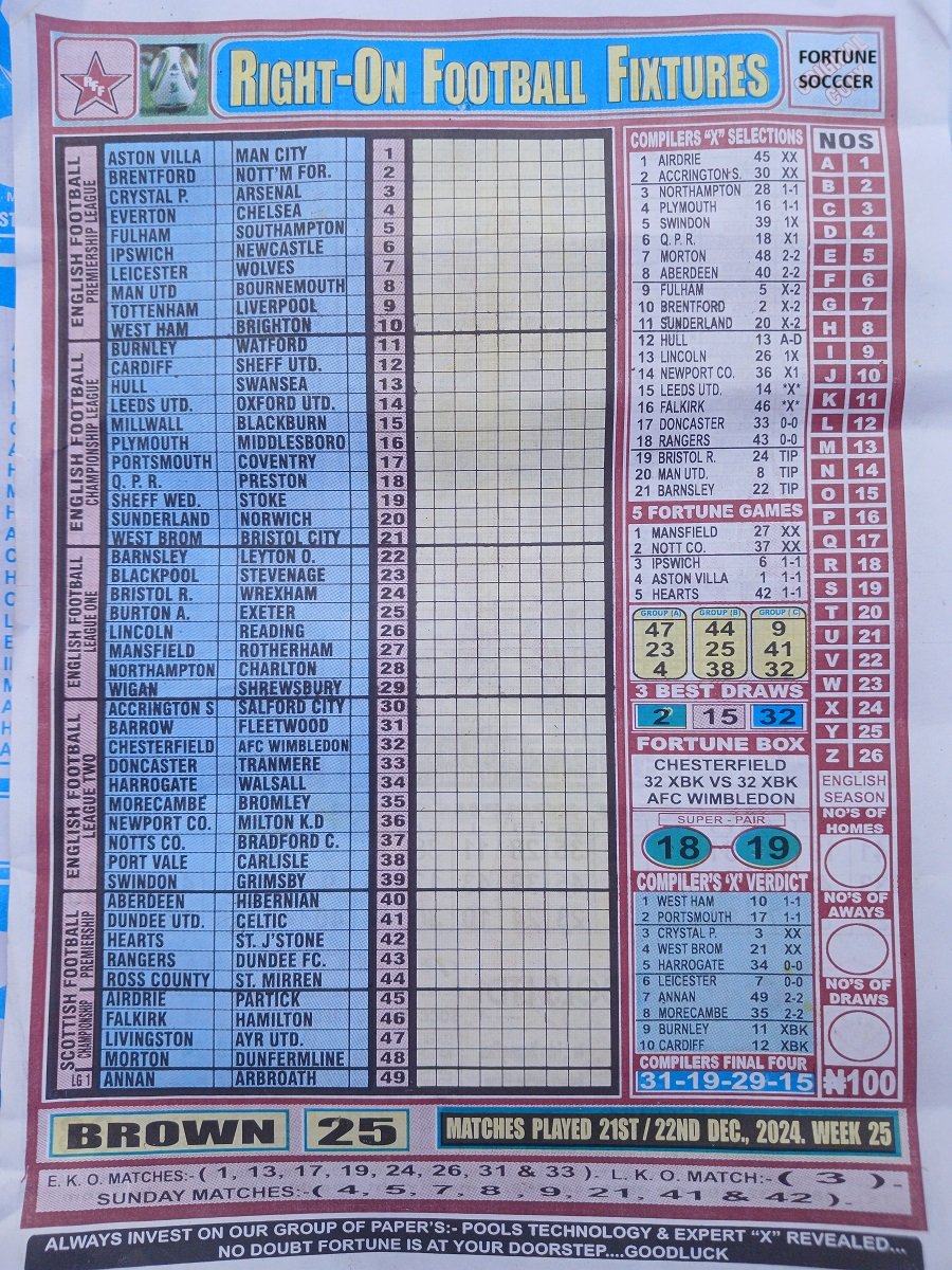Stay tuned for more updates, analysis, and highlights as Week 25 unfolds in the world of football.